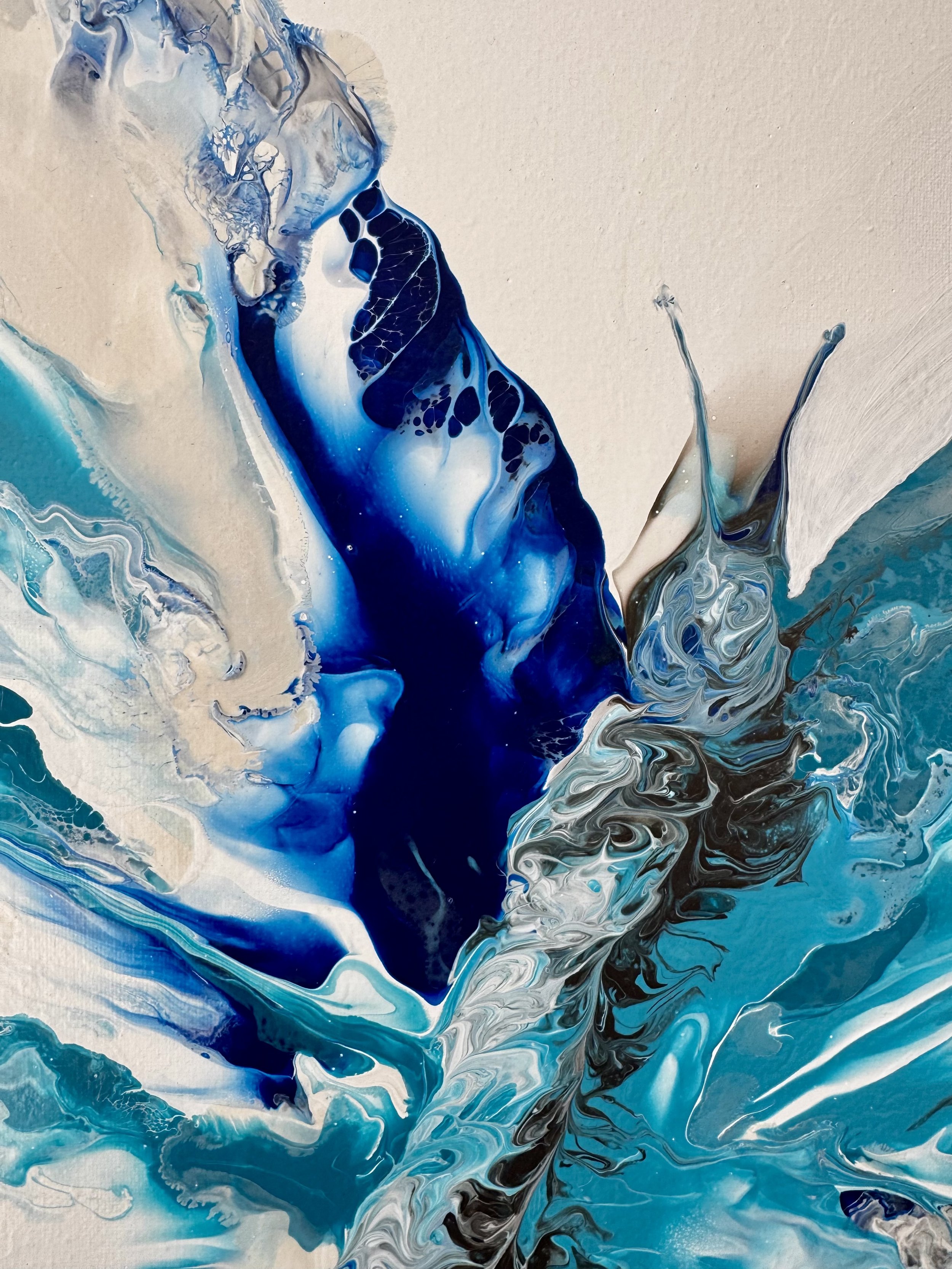 In the Studio, expectations are left at the door and control is released, allowing the fluid acrylic paint to define its own boundaries and patterns. There is no pressure for a final state here; there is only the presence of the process. It mirrors the subterranean life of the foundress queen bee – the deep, dark, and essential work of building a foundation from the inside out.